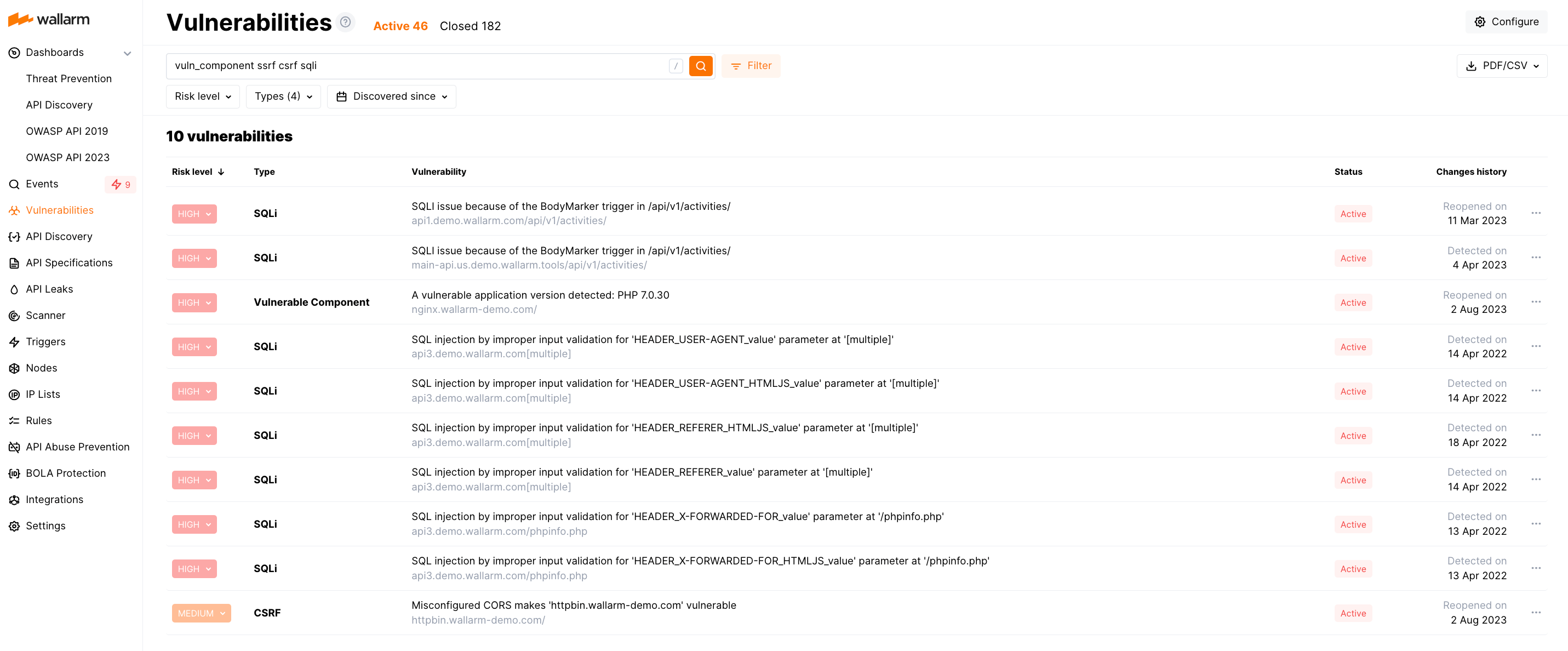 Managing deployed risk is the first line of defense, but reducing the risk exhibited by product applications and APIs is the most effective way to reduce incidents. Wallarm closes the loop on application and API security by providing a suite of testing capabilities to find and eliminate vulnerability risk as follows: