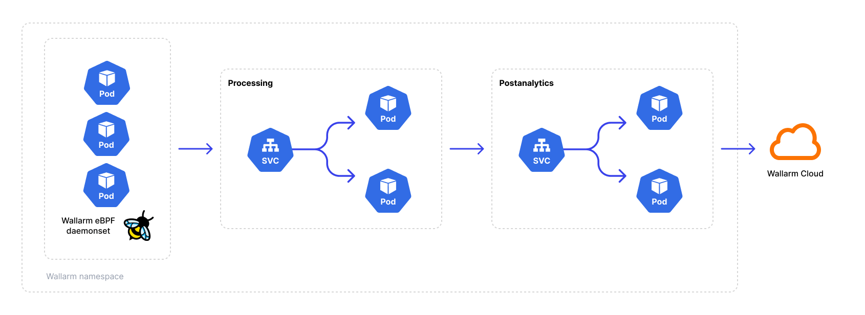 • wallarm-ebpf is the new namespace to deploy the Helm release with the Wallarm eBPF chart, it is recommended to deploy it to a separate namespace