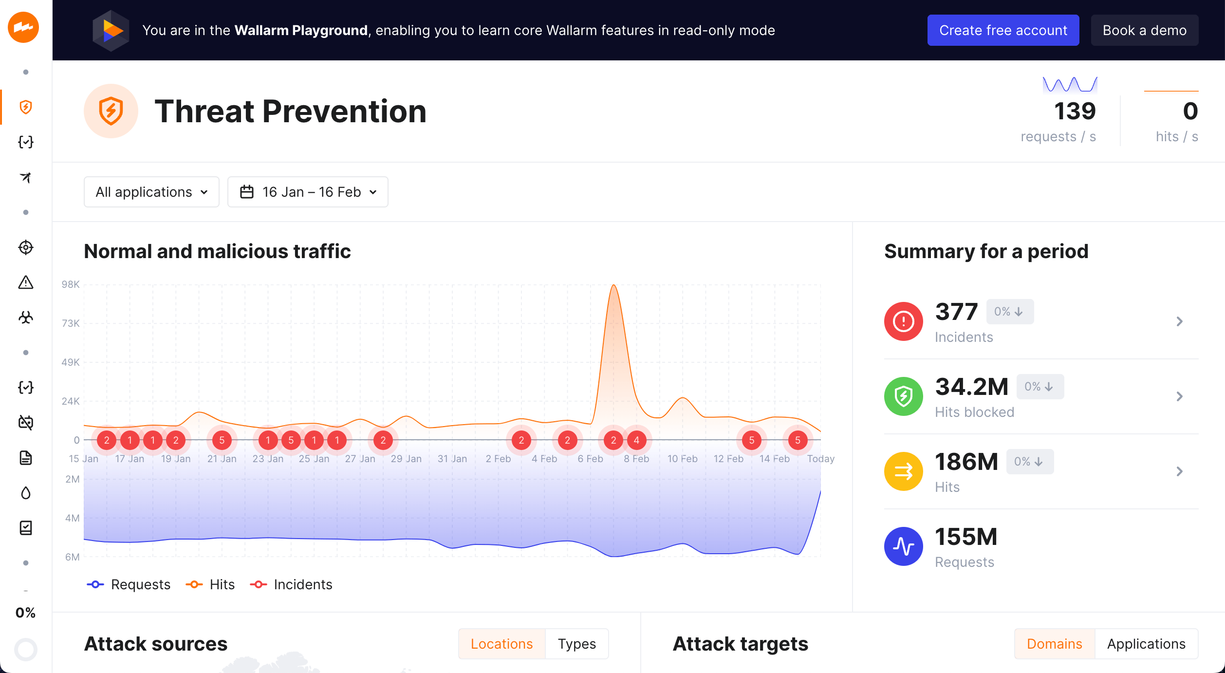 Wallarm delivers all-in-one API security, identifying and protecting your APIs from vulnerabilities and malicious activities. To help you begin using the platform, we offer a Playground for exploration prior to signing up, a Free Tier upon registration, and access to expert support for a seamless experience.